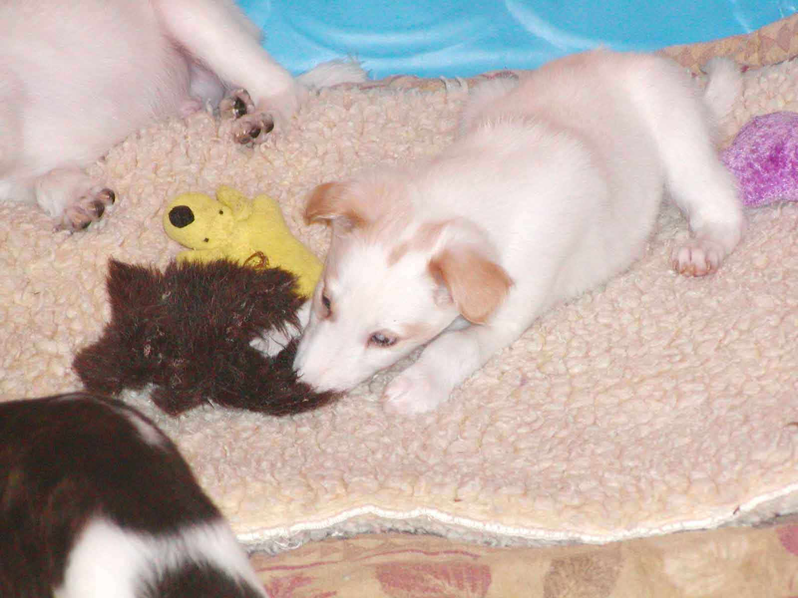 - Laguna Seca – Red Brindle extreme white split face. Now living at his new home in Idaho